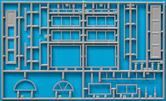 sprues of styrene represent the window and door furniture – shutters and doors