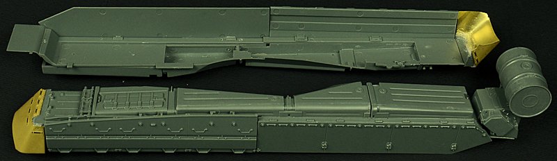 The spare track go onto the fenders, the hooks, driver’s periscopes and lights
