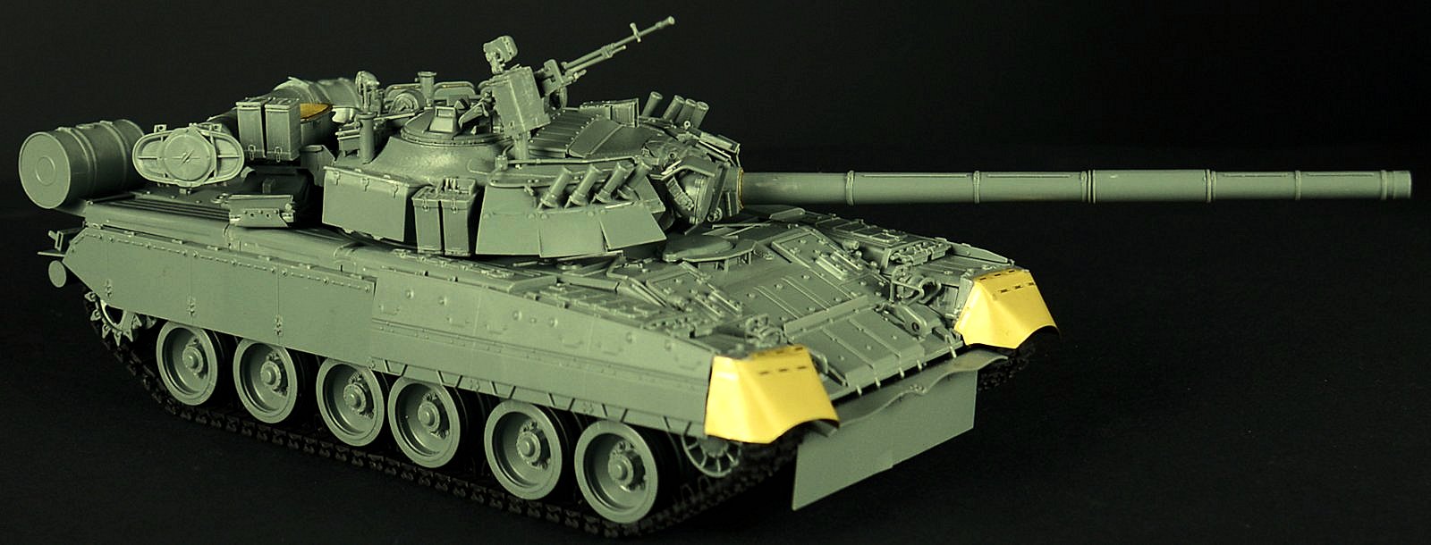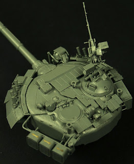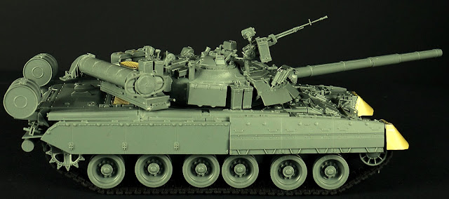 “Developed from the Soviet Union T-64 at the Morozov Design Bureau in Kharkov, the Russian's T-80 was putted into service in 1976. In 1985, modernization resulted in the beautiful T-80U. Featured a newly designed turret which equipped with the second generation "Kontakt 5 " explosive reactive amour and a Brod-M deep wading equipment. Arming with a 125mm 2A46-1 smooth bore gun which can fire the 9M119 Refleks (AT-11 Sniper) guided missile and the Long-Rod penetrator (HVAPFSDS) 3BM46.