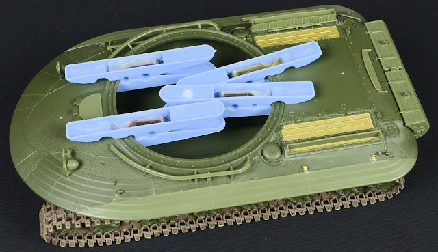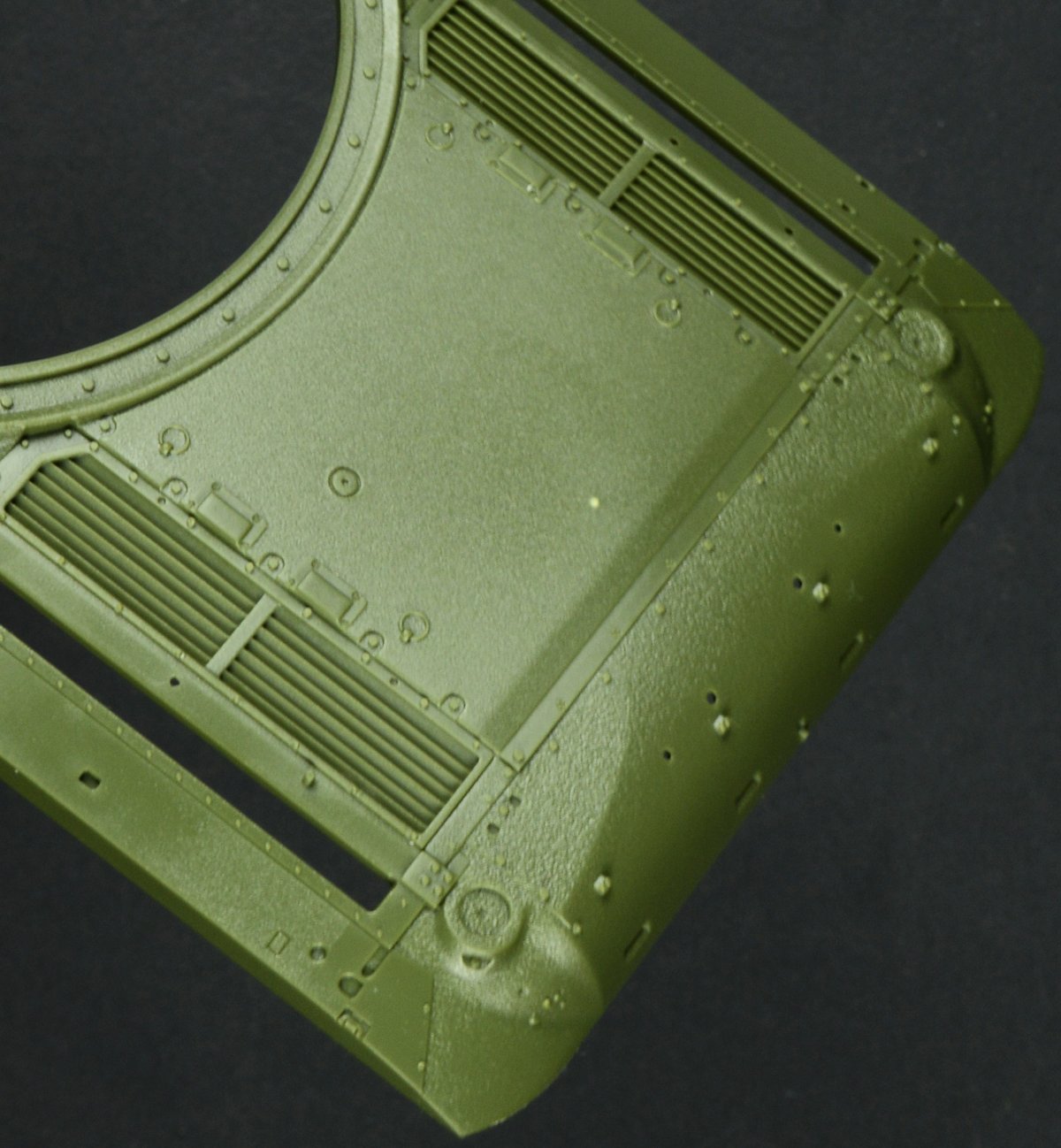 replicated here on the rounded glacis and the rear engine deck. The bottom of