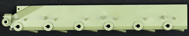 I thought I would try out two different methods of attaching the tracks to the road wheels. One with the sponsons already on and one ¾ assembled off the vehicle and then adding the rear links later. So I put on one of the sponsons which fit perfectly. My reasoning for only one at a time was that I can get at both sides for installing the tracks if I wanted to.