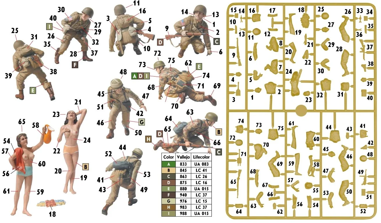 consists of 6 figures, two of them are girls, two - US paratroopers