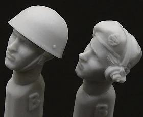 These two figures come separately or together in the one little green and clear box Alpine is well known for. Both of the figures are sealed by themselves in a Zip-Loc bag. The grey resin inside doesn't smell too strongly and it is fairly free of any excess material but there are a few little bits of excess you need to scrape off with the back of your hobby knife. Nothing too strenuous. The resin is bubble-free on the surfaces and the parts are attached to resin casting blocks that are not in dangerous areas when needing to be cut free.The two figures are both wearing similar garb but with slight differences in them - just like soldiers would in the army. Let's have a look at them now individually and as a pair...