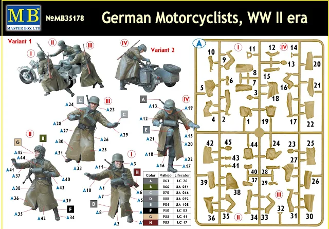 assembly of 4 figures of German motorcyclists of WWII era, the second sprue –