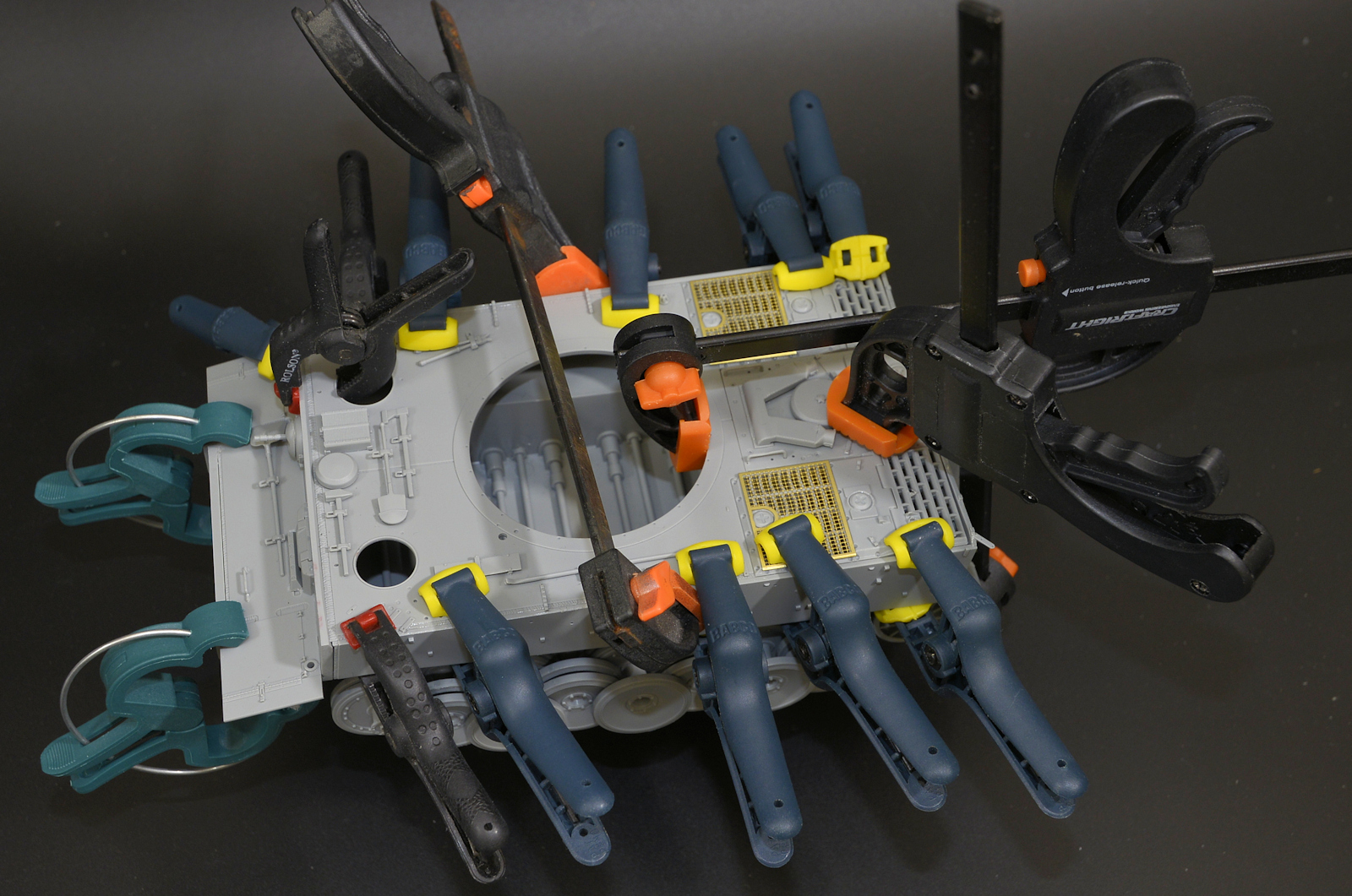We have next more tools going on to the deck of the tank, as well as the Photo-Etch mesh for the grills