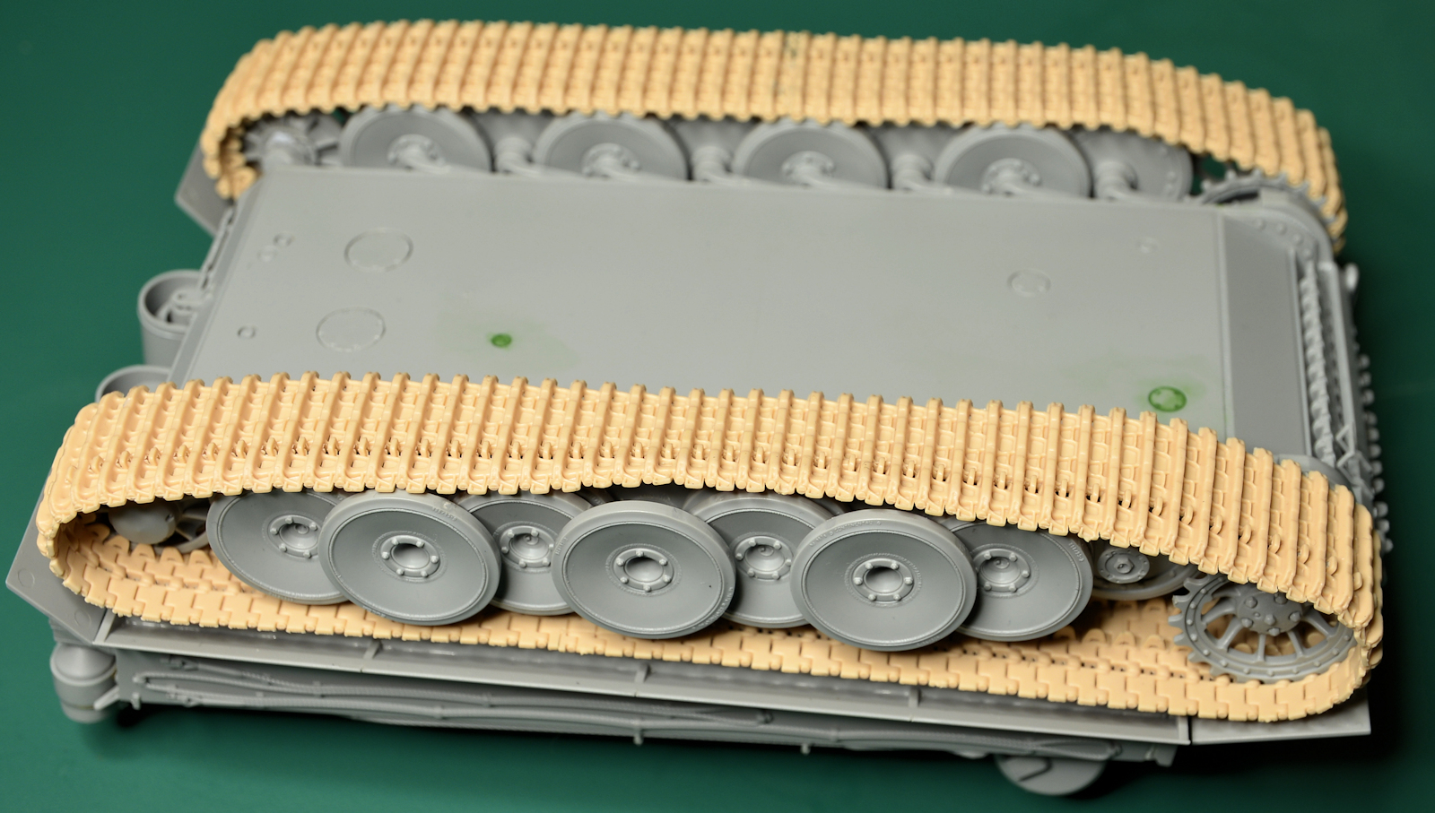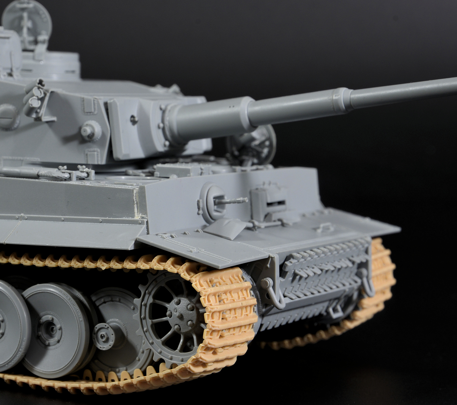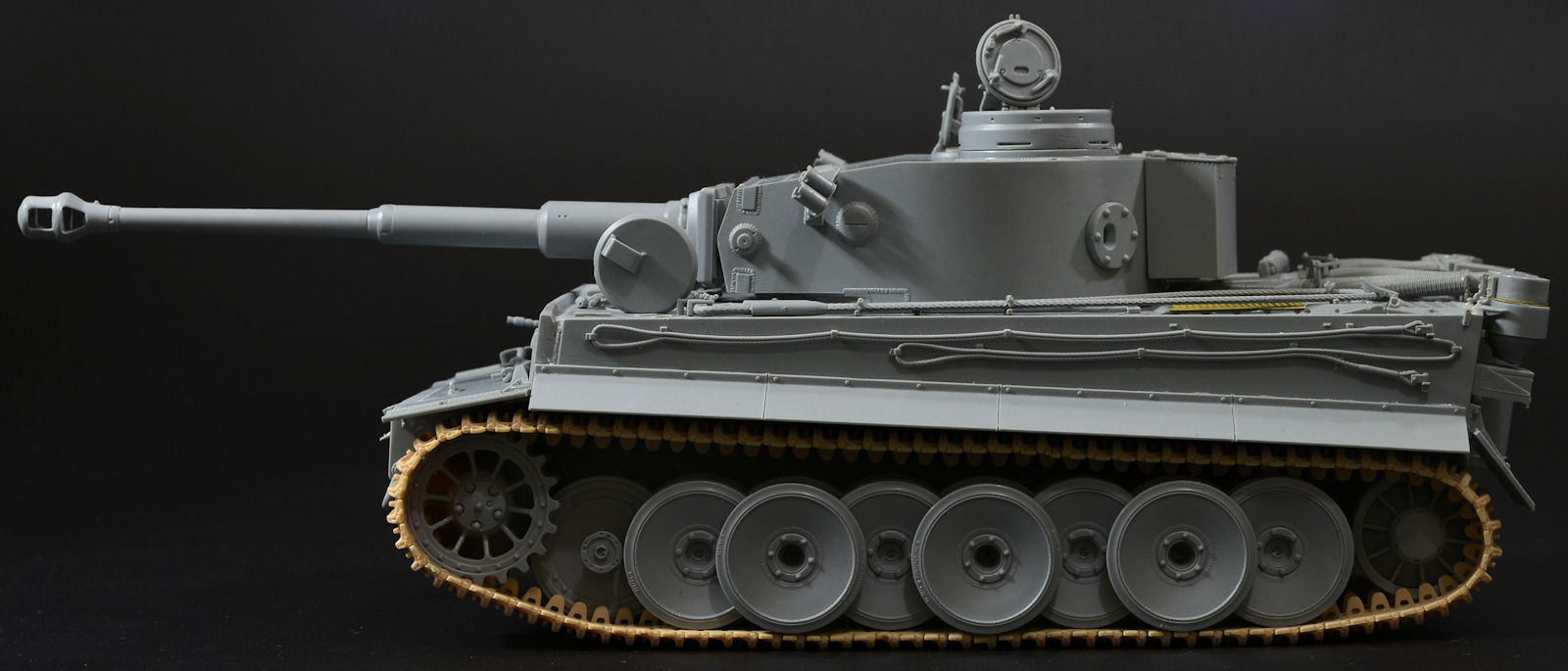 The pre moulded tow cables have only a minimum of a mould seam on them so they are pretty good - They have clasps on them in the designated places to attach to the hull simply. Recently the style of tow hook clasps has been brought into question, so check your references for your own tank. The ones here match "131" just fine for us