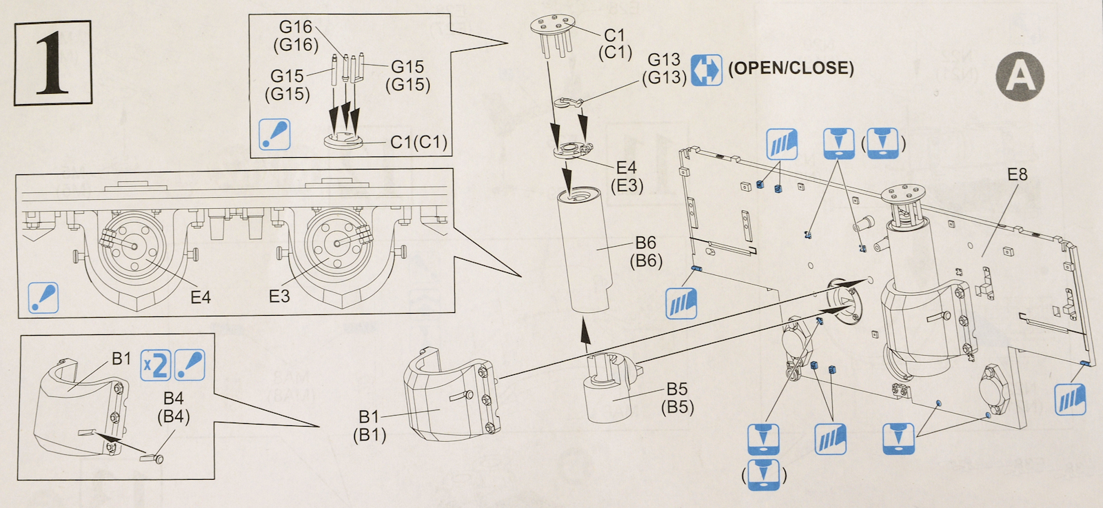 Parts G15 are not very clear as to the angle they go into the holes provided until they are in place, but once everything is there it can sit open or closed.