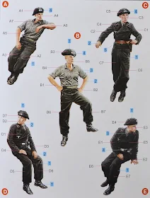 The rear of the box shows each of the figures in isolation and the colours in most of the major paint brands as well as the shade itself (nice) and this serves as a pretty good painting guide for these early war uniforms that were more strictly regulated than the latter war standards.