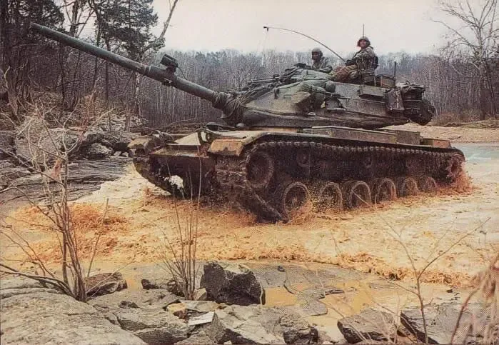 An M60A3 conducting a ford at Fort Knox, Kentucky.