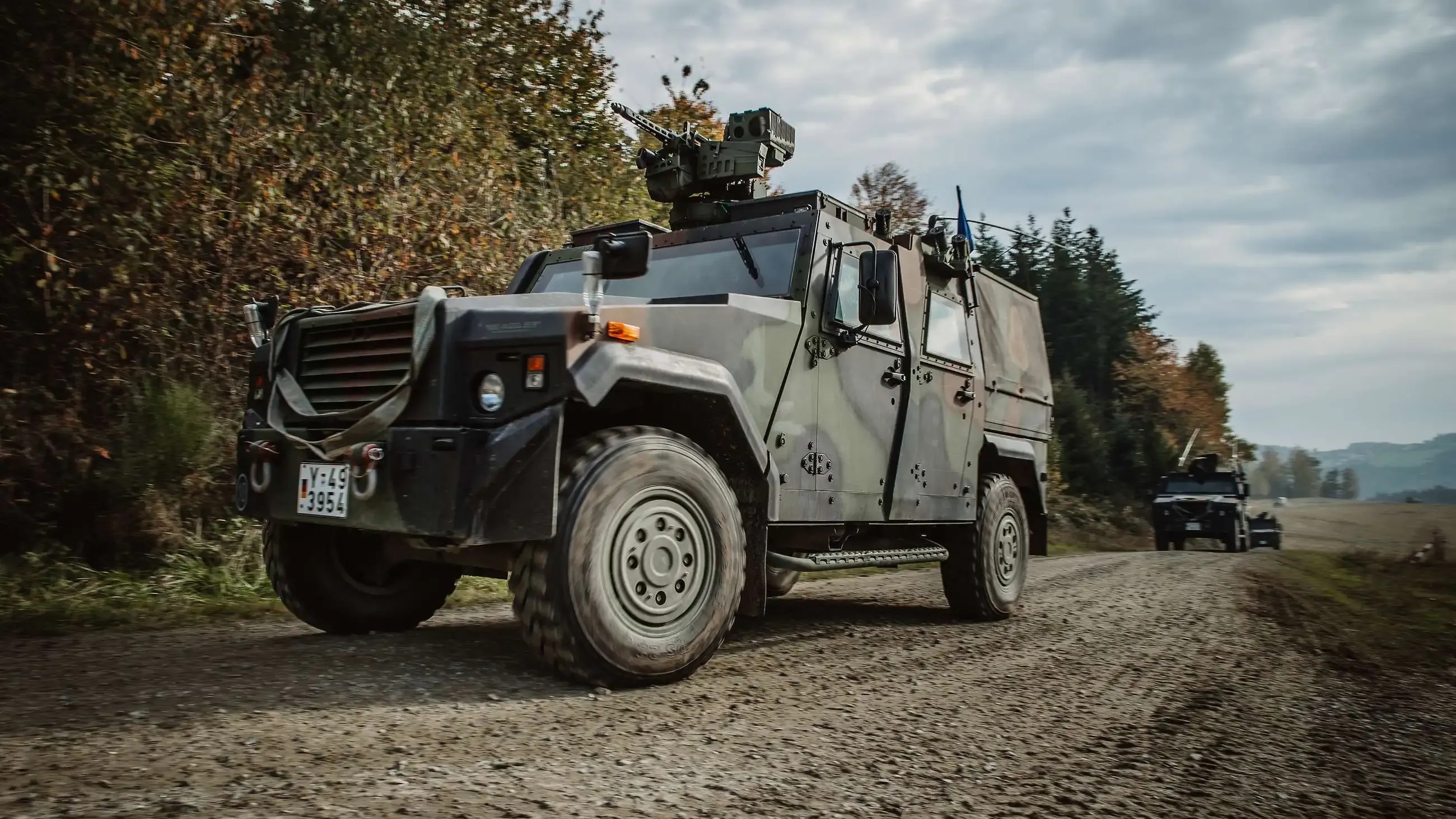 The GFF Protected guide and function vehicle Eagle IV emergency vehicle patrol fuse is with the remote-controlled light weapon station (FLW Remote-controlled light weapon station100) equipped