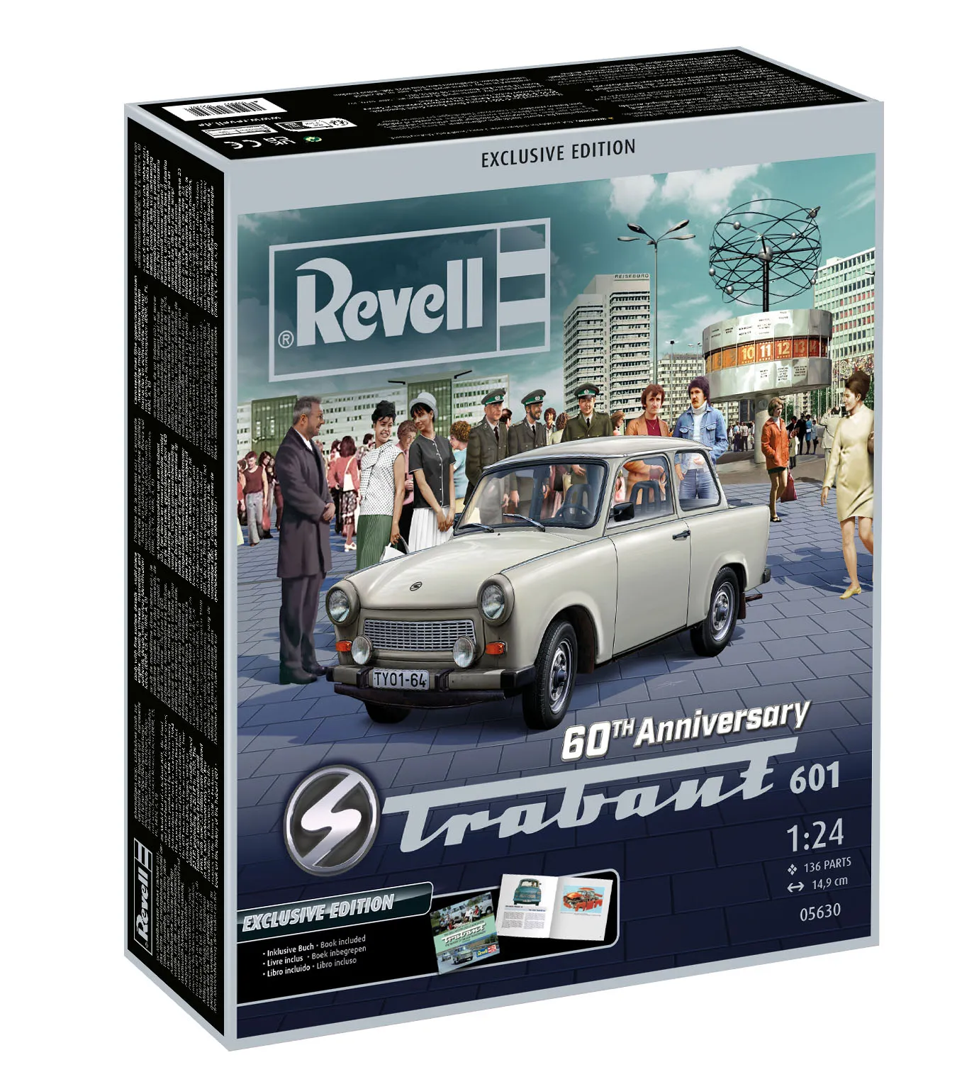 The Trabant 601, the third and most built model of the Trabant series, was manufactured from 1964 by the VEB Sachsenring Automobilwerke in Zwickau. With over 2.8 million units produced, the Trabant 601 became a symbol of mobility in the former GDR. The body made of duroplast and the air-cooled two-cylinder two-stroke engine with its unmistakable soundscape made the Trabant unique. This exclusive edition of the model kit celebrates the 60th anniversary of this iconic vehicle and offers modelers the opportunity to recreate a piece of automotive history.The Trabant 601 in an exclusive 60th anniversary model edition. This highly detailed 1:24 scale kit captures the essence of the iconic vehicle, which was produced in the former GDR from 1964 to 1990. With a part count of 136, this kit offers an exciting challenge for collectors and model building enthusiasts alike. Recommended for ages 12 and up.